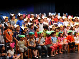 Cantar i ballar són formes d’expressió innates en la majoria de nens i nenes. L’infant es posa en contacte amb la música a través de quatre eixos bàsics: la cançó, la dansa, l’audició i el ritme per mitjà del propi cos i els instruments de petita percussió.